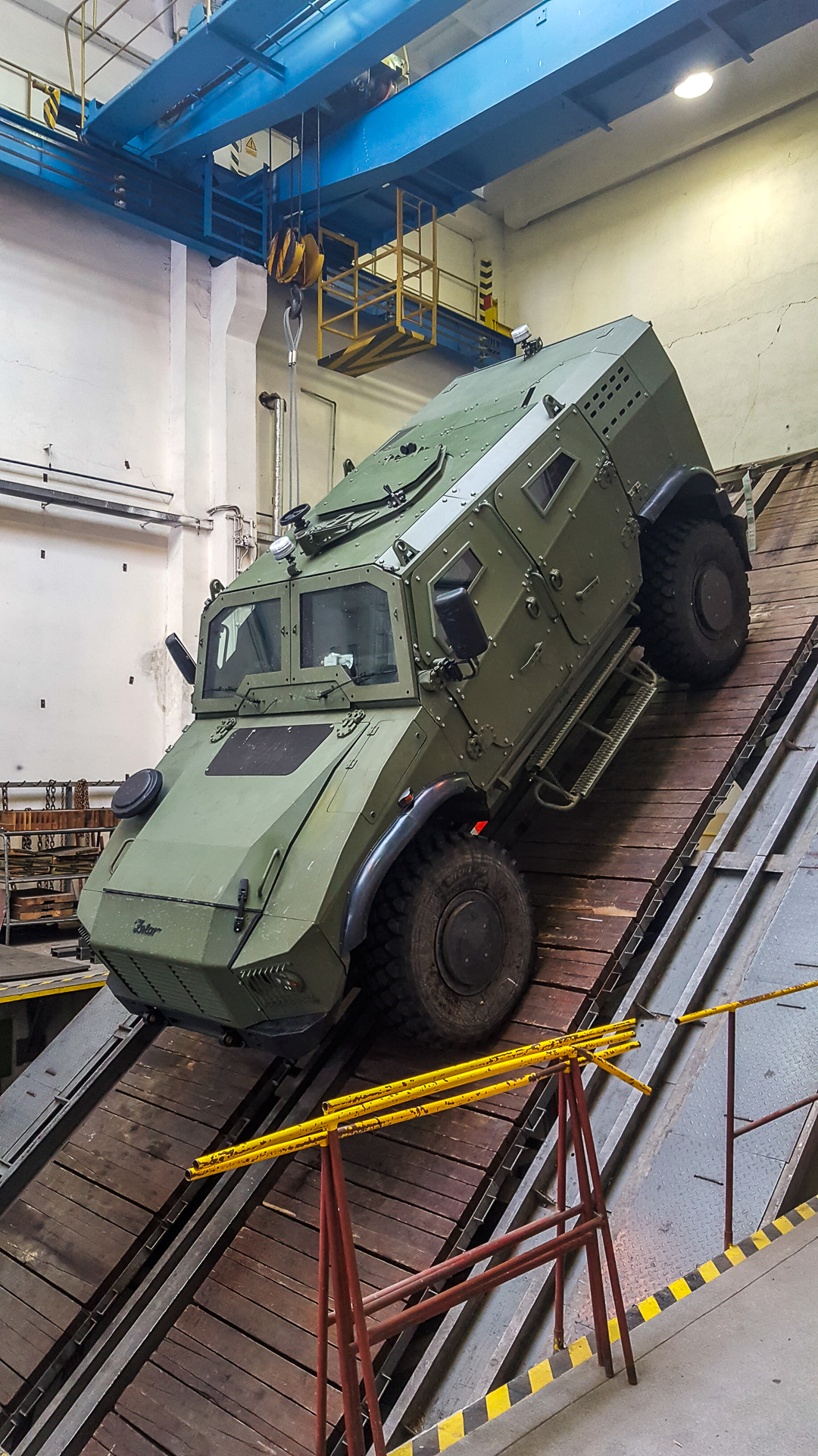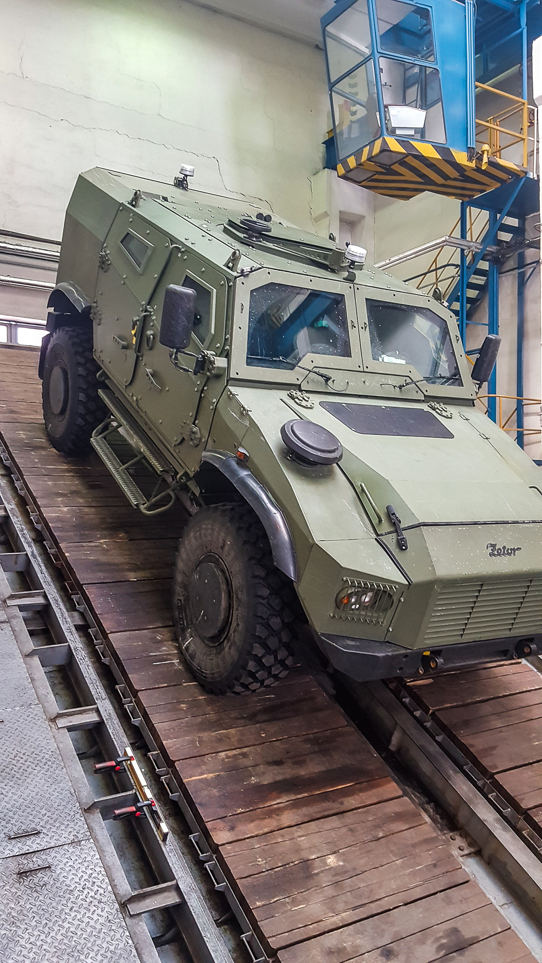 During the tests, the vehicle was weighted to a maximum weight of 14.2 tons, simulating the weight of a 6-member crew with full equipment as well as the maximum cargo weight in the cargo space. As P. Bušta explained, these results were achieved using special components and the cooperation of the parking system with a special descending gearbox, as the parking brake alone would not be able to cope with such a strain. The test resulted in a certificate issued by the Military Technical Institute as the certification office.